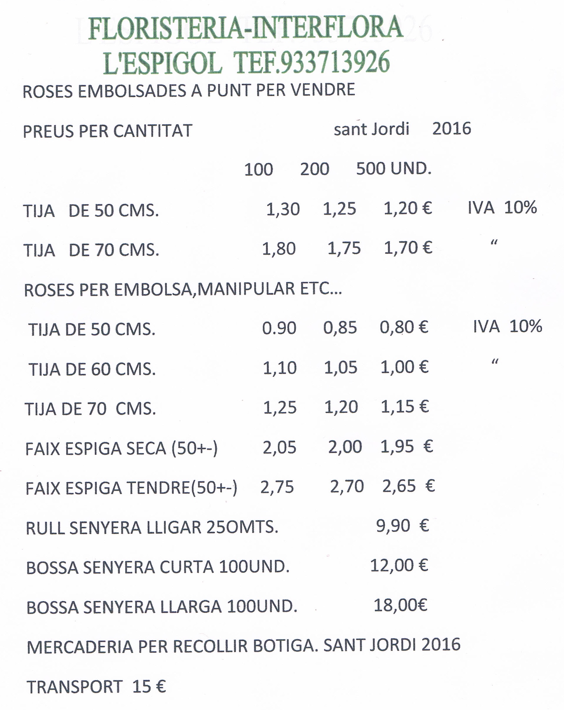 OFERTA DE LA FLORISTERIA L’ESPIGOL
