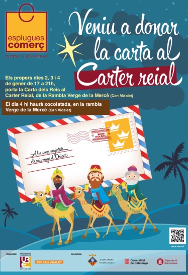 Infants d’#Esplugues, la UBE i l’AVV de Can Vidalet us convidem a entregar la carta al Carter Reial que avui i demà serà a La Rambla Verge de la Mercè. Demà Xocolatada!