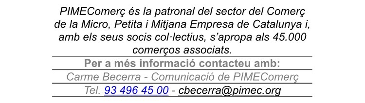 El president de PIMEComerç, Àlex Goñi, manifesta que “davant la possibilitat que la PNL tiri endavant, amb les greus repercussions que això tindria, PIMEComerç està estudiant diferents actuacions tendents a aconseguir que no s’aprovi, buscant la interlocució tant amb els grups polítics impulsors, com amb el Ministeri de Justícia com amb altres patronals de l’àmbit de l’Estat espanyol”.