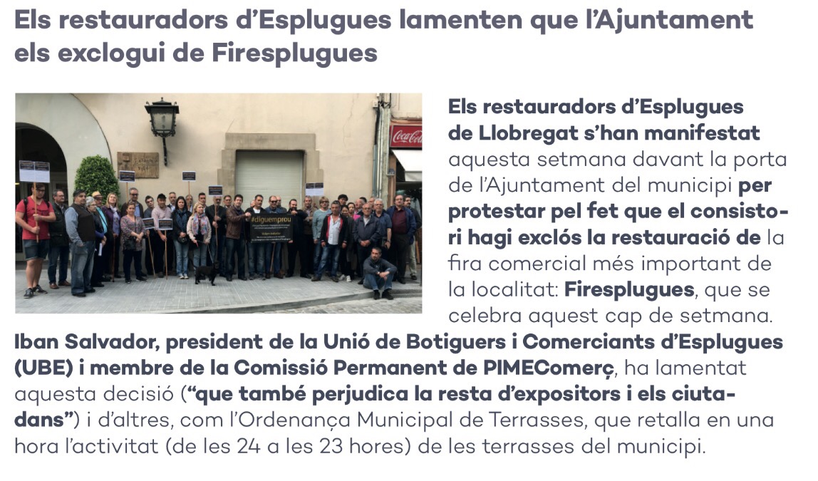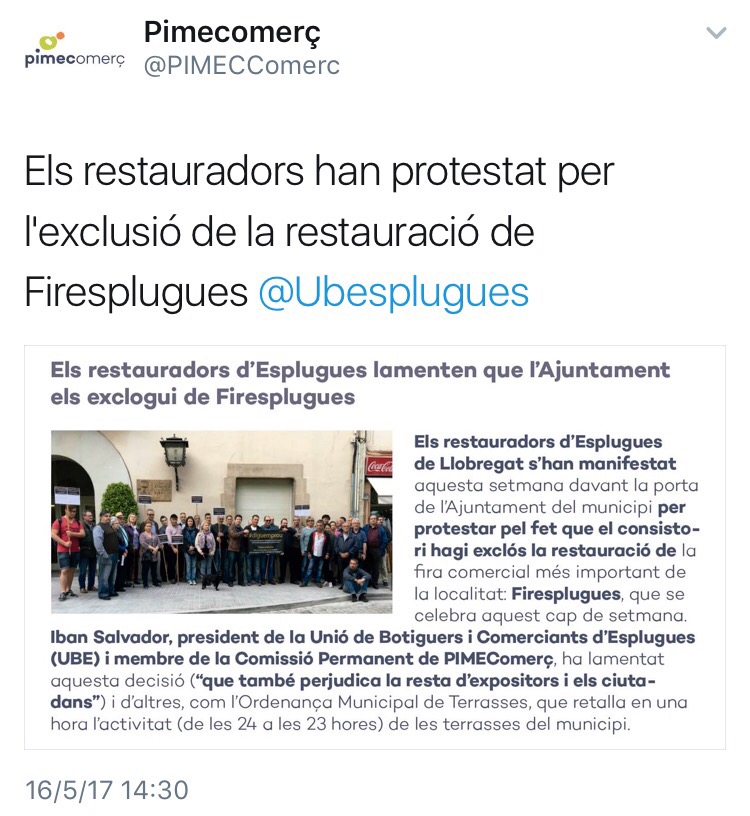 Els restauradors d’#Esplugues lamenten que l’Ajuntament els exclogui de #Firesplugues. @PimecComerc @Ajesplugues @UBEsplugues