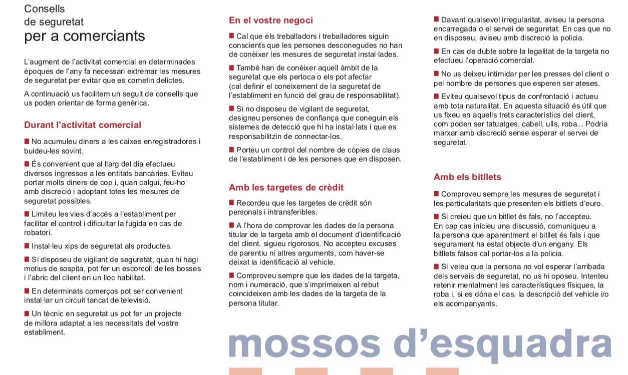 Consells de seguretat campanya d’estiu pel #comerç d’#Esplugues. @UBEsplugues @MossosCat
