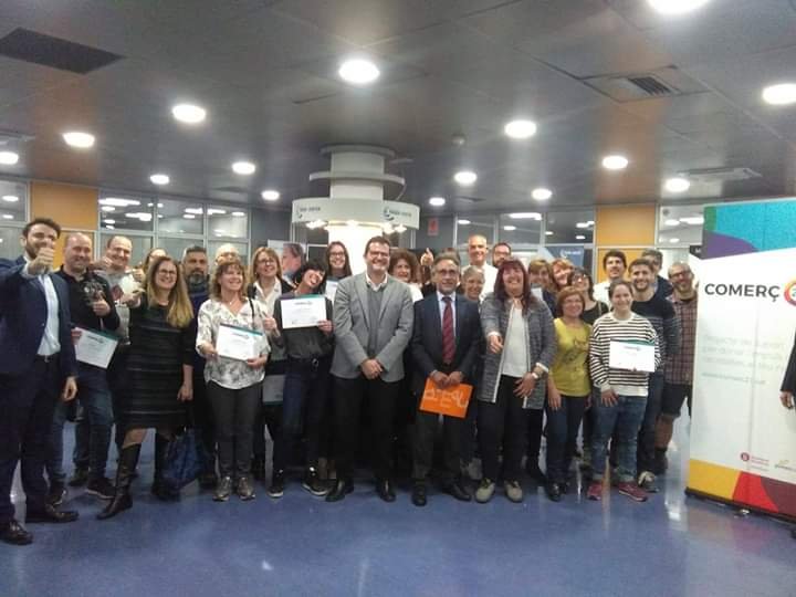 Pimec Comerç i la Diputació de Barcelona fan entrega del diploma que acredita als 50 comerços participants de Comerç21 la seva participació.
