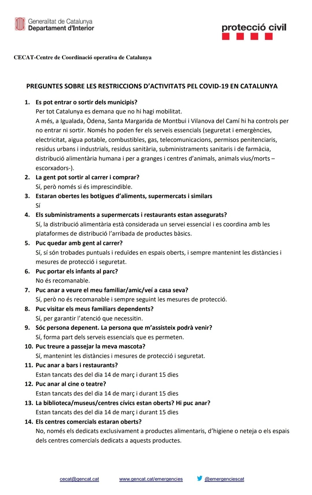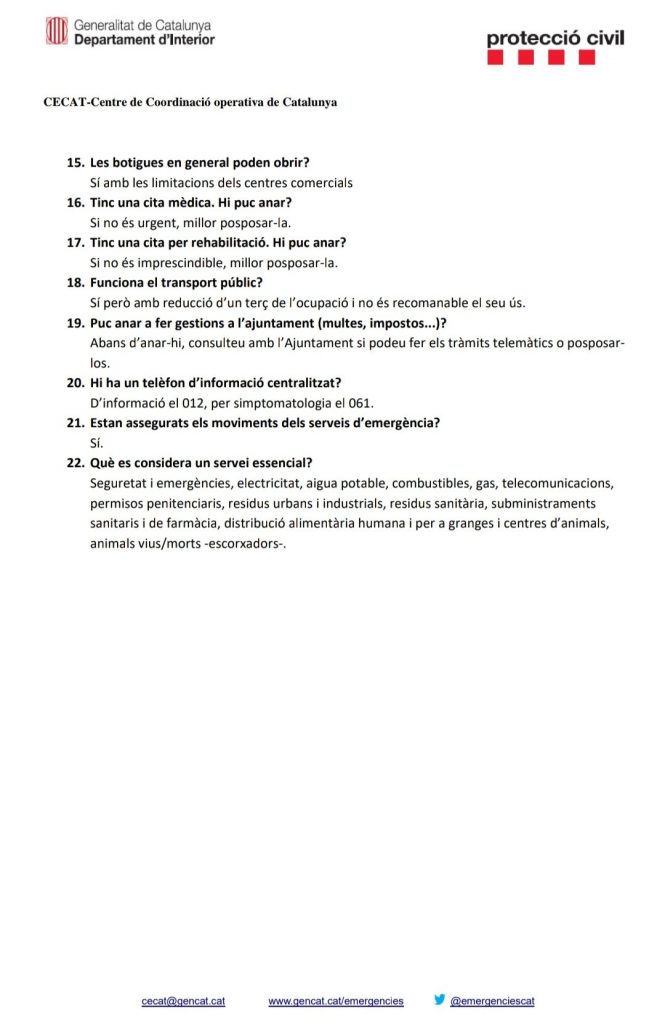 PREGUNTES SOBRE LES RESTRICCIONS D’ACTIVITATS PEL COVID-19 EN CATALUNYA
